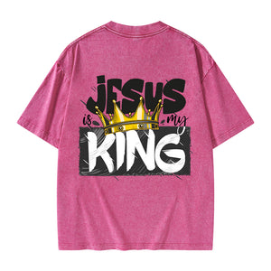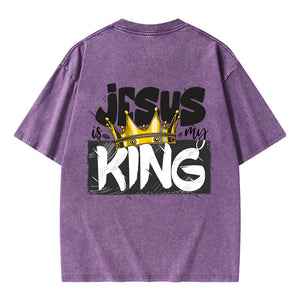 GC-WTSA1025 Jesus Is My King Christian Washed T-Shirt