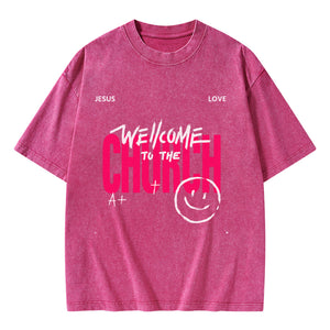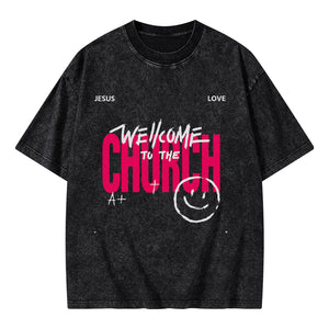 GC-WTSA1061 Welcome To The Church Christian Washed T-Shirt