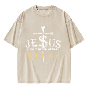 GC-WTSA1141 Jesus Highly Recommended Christian Washed T-Shirt