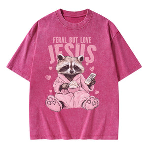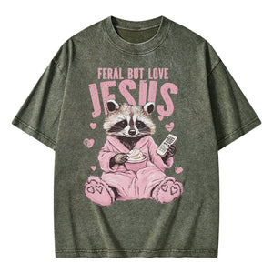 GC-WTSA1412 Feral But Loves Jesus Christian Washed T-Shirt