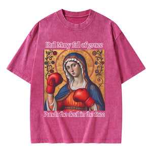 GC-WTSA1441 Hail Mary Full Of Grace Christian Washed T-Shirt