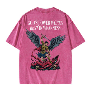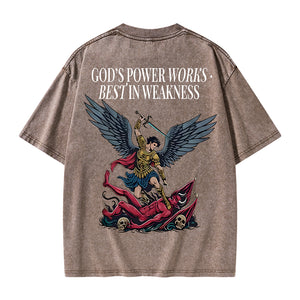 GC-WTSA1452 God's Power Works Beat In Weakness Christian Washed T-Shirt