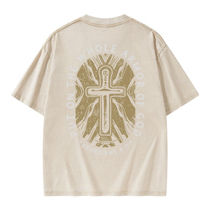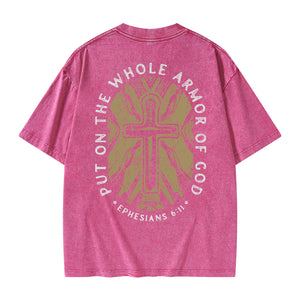 GC-WTSA1398 Put On The Whole Armor Of God Christian Washed T-Shirt