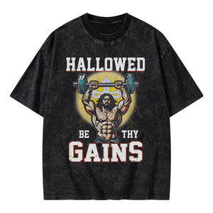GC-WTSA1585 Hallowed Be The Gains Christian Washed T-Shirt