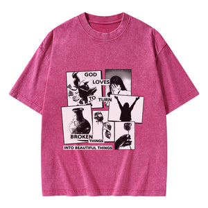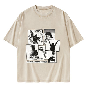 GC-WTSA1857 God Loves To Turn Broken Things Into Beautiful Things Christian Washed T-Shirt