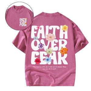GC-WTSA1916 Faith Over Fear Christian Washed T-Shirt