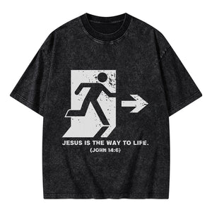 GC-WTSA1924 Jesus Is The Way To Live Christian Washed T-Shirt