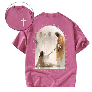 GC-WTSA1937 By His Wounds We Are Healed Christian Washed T-Shirt