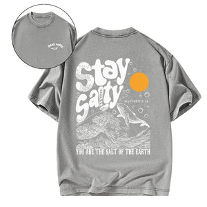 GC-WTSFK0031 Stay Salty Ocean Waves Christian Washed T-Shirt