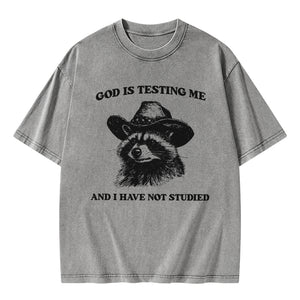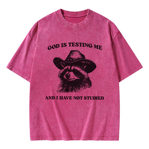 GC-WTSFK24072810 God's Testing Me Funny Raccoon Christian Washed T-Shirt