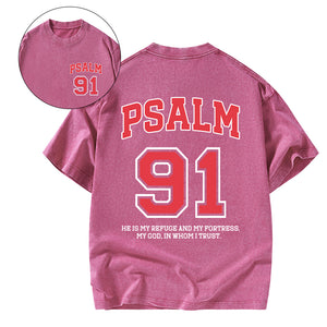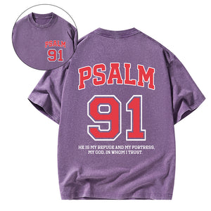 GC-WTSFK25051501 Psalm 91 He Is My Refuge And My Fortress Christian Washed T-Shirt
