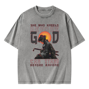 GC-WTSK0110 She Who Kneels Before God Christian Washed T-Shirt