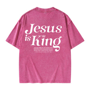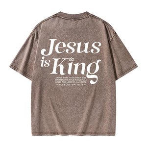 GC-WTSK0001 Jesus Is King Christian Washed T-Shirt