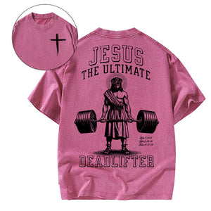 Jesus The Ulimate Deadlifter Chrsitian Washed T-Shirt