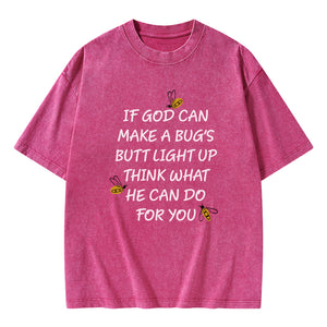 GC-WTS0016 If God Can Make a Bug's Butt Light up Think What He Can Do for You Vintage Washed Christian T-Shirt
