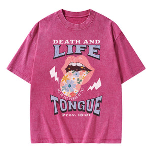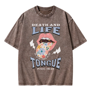 GC-WTS0027 Death And Life Tongue Christian Washed T-Shirt