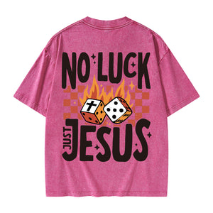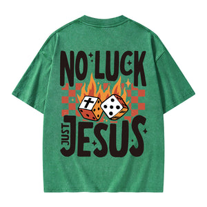 GC-WTS1018 No Luck Just Jesus Christian Washed T-Shirt