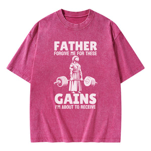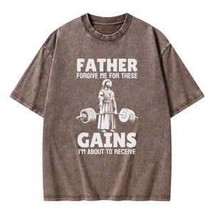 GC-WTS1477 Father Forgiven Me For These Gains Chrsitian Washed T-Shirt