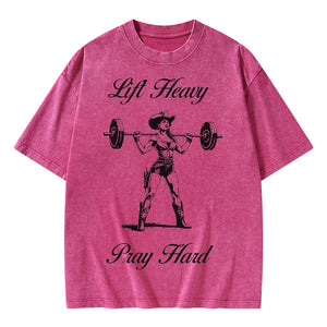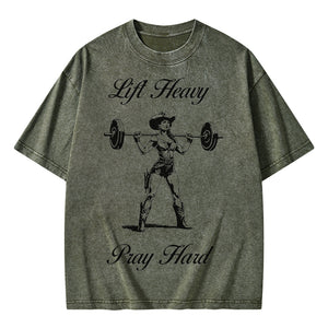 GC-WTS1511 Lift Heavy Pray Hard Christian Washed T-Shirt