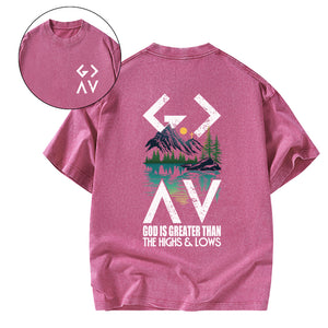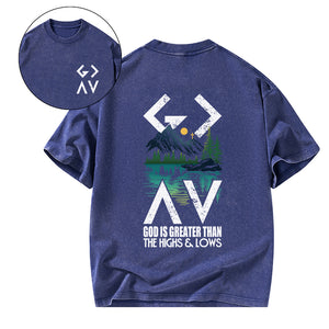 GC-WTS1590 God Is Greater Than The Highs And Lows Christian Washed T-Shirt