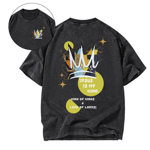 GC-WTS2132 Jesus Is My King Christian Washed T-Shirt