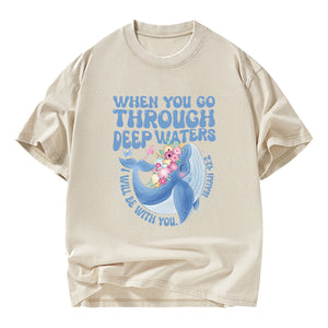 When You Go Through Deep Waters Christian Washed T-Shirt