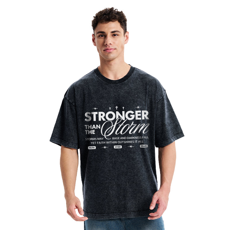 Stronger Than The Storm Christian Washed T-Shirt