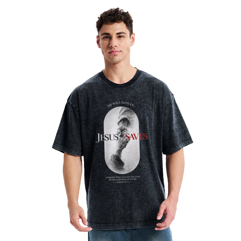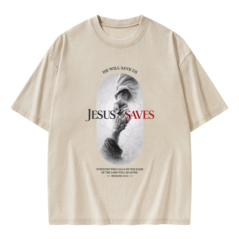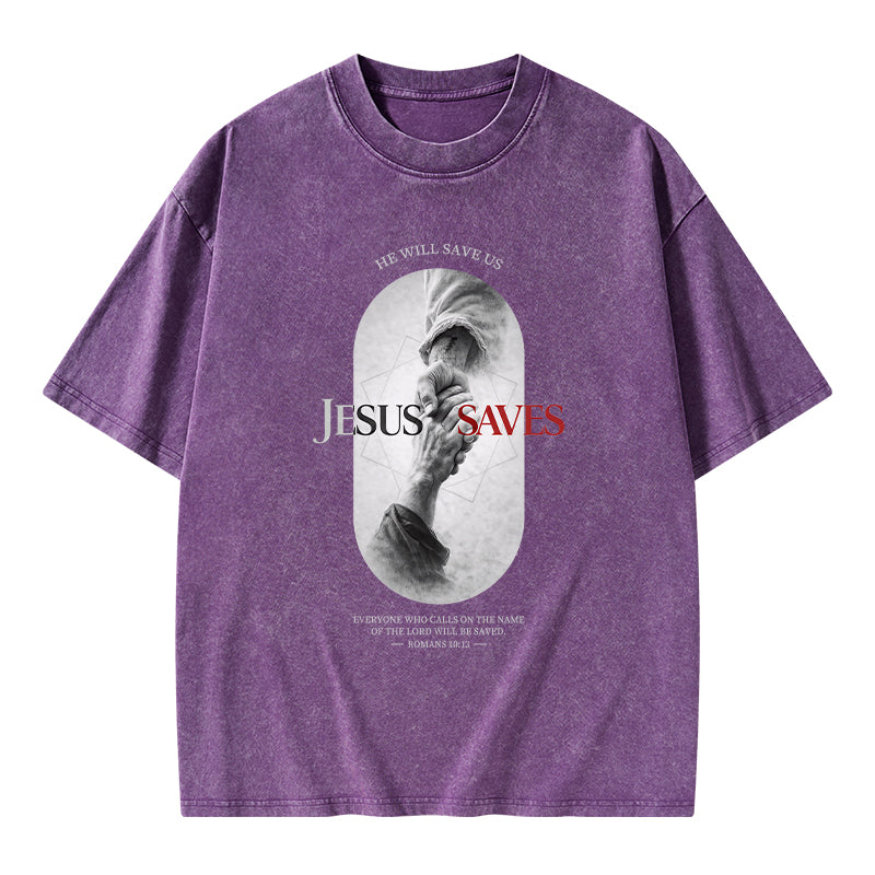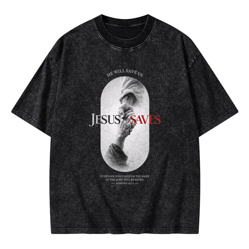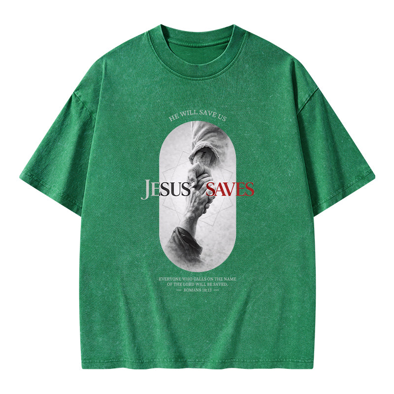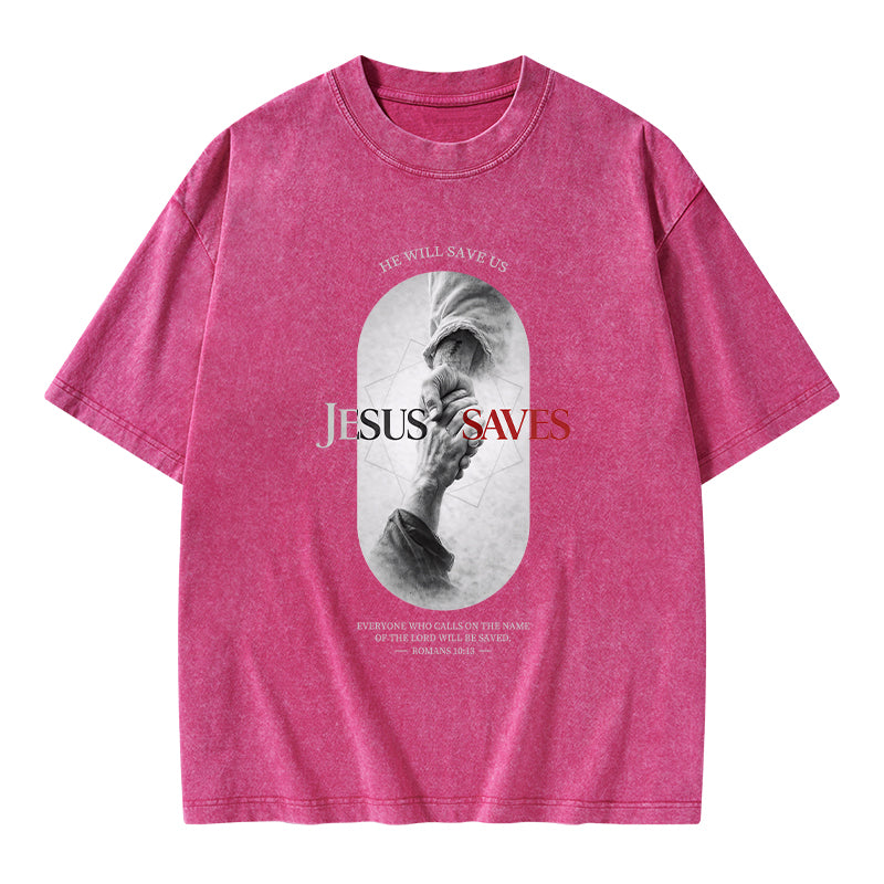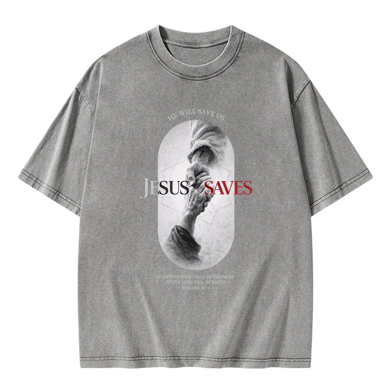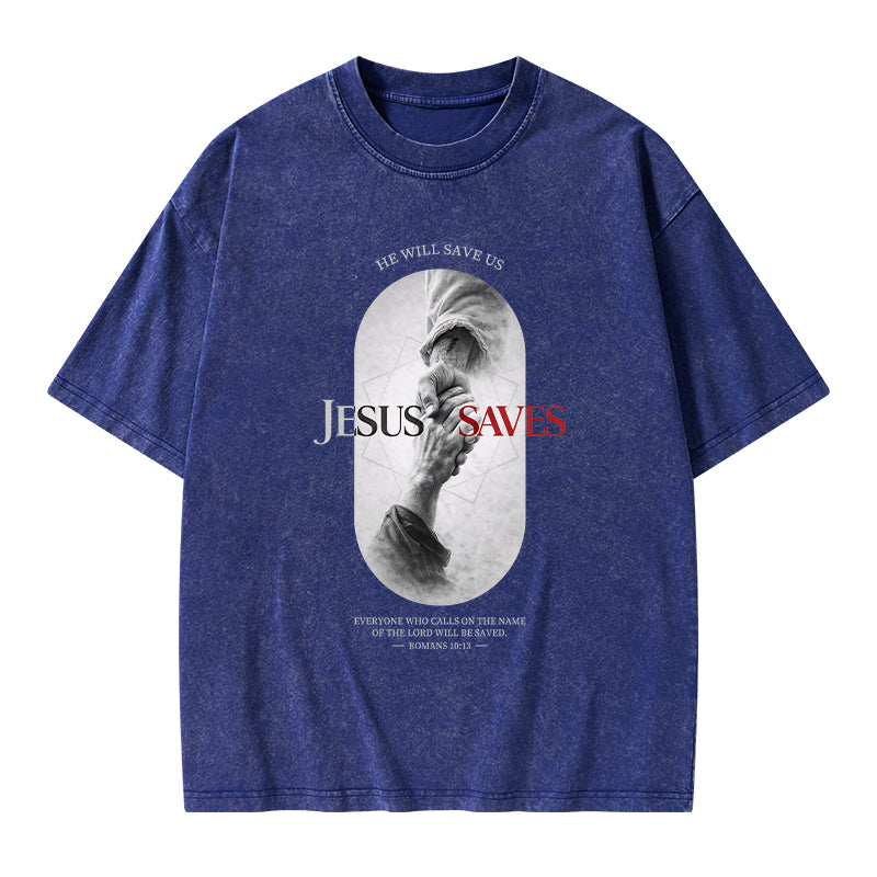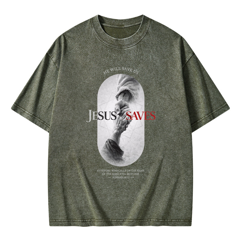 He Will Saves Us Christian Washed T-Shirt