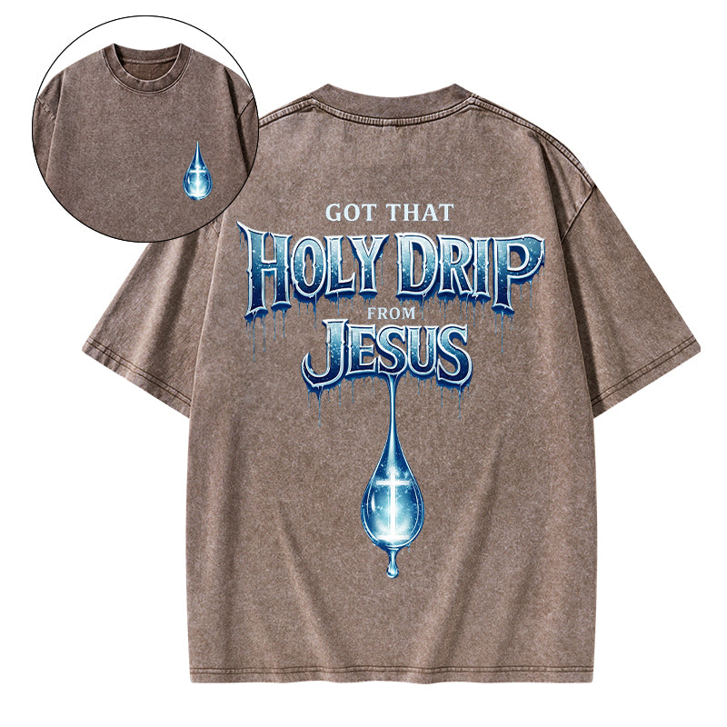 Jesus Got That Holy Drip Christian Washed T-Shirt
