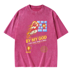 I Can Leap Over A Wall By My God Christian Washed T-Shirt