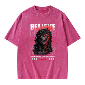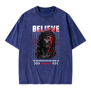 The One Who Believes Has Eternal Life Christian Washed T-Shirt
