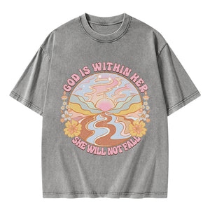 God Is Within Her She Will Not Fall Christian Washed T-Shirt