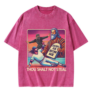 Except For Second Base Christian Washed T-Shirt