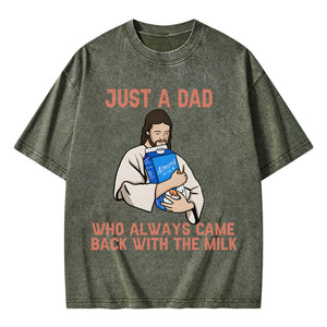 Just A Dad Who Always Came Back With The MILK Christian Washed T-Shirt
