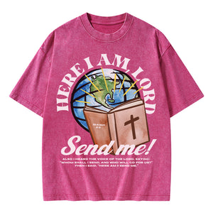 Here I Am Lord Send Me Christian Washed T-Shirt