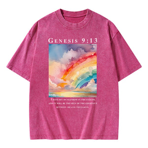 I Have Set My Rainbow In The Clouds Christian Washed T-Shirt