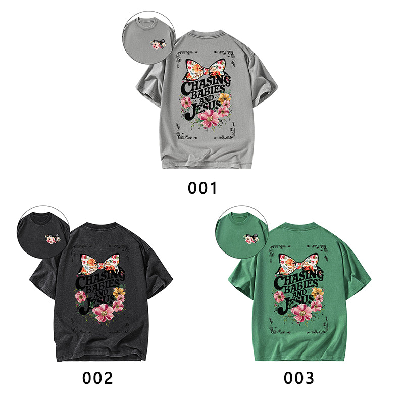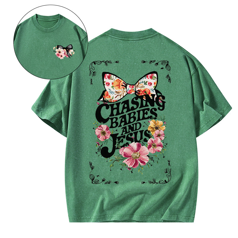 Chasing babies And Jesus Christian Washed T-Shirt