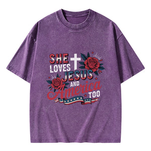 She Loves Jesus And America Christian Washed T-Shirt