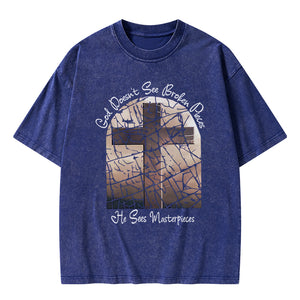 God Dosen't See Broken Pieces Christian Washed T-Shirt