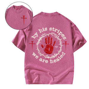 By His Stripes We Are Healed Christian Washed T-Shirt