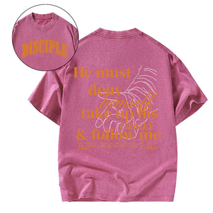 He Must Deny Himself Take Up His Cross And Follow Me Christian Washed T-Shirt
