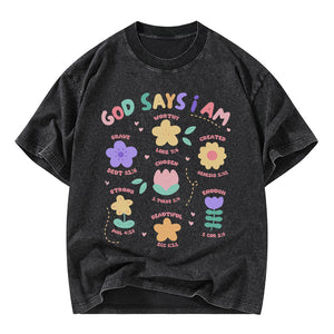 God Says I Am Flowers Christian Washed T-Shirt