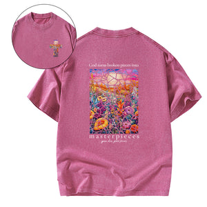 God Turns Broken Pieces Into Masterpieces Florals Christian Washed T-Shirt