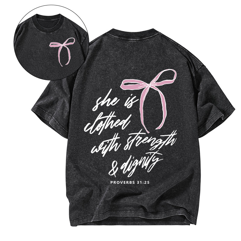 She Is Strong Christian Washed T-Shirt