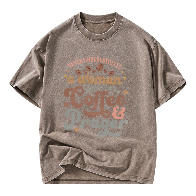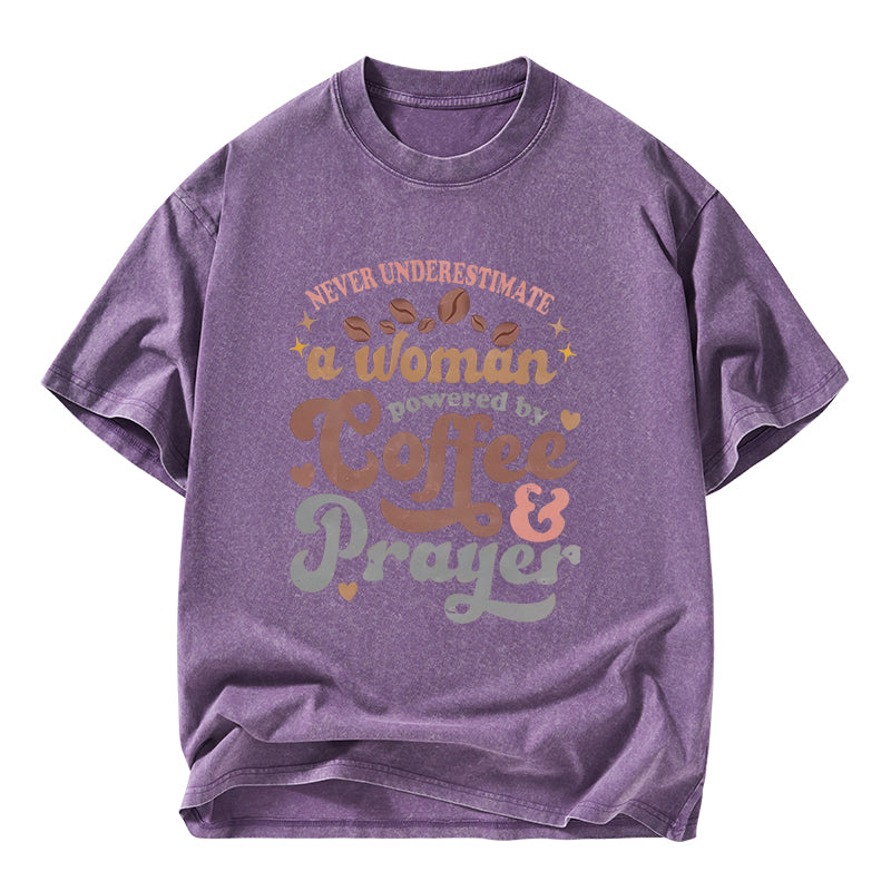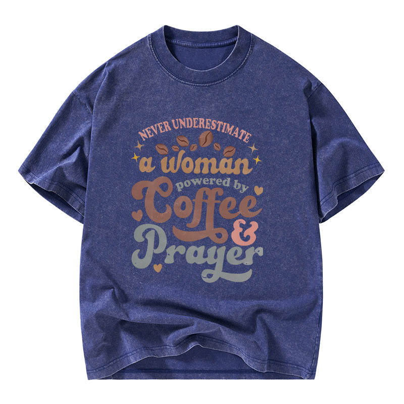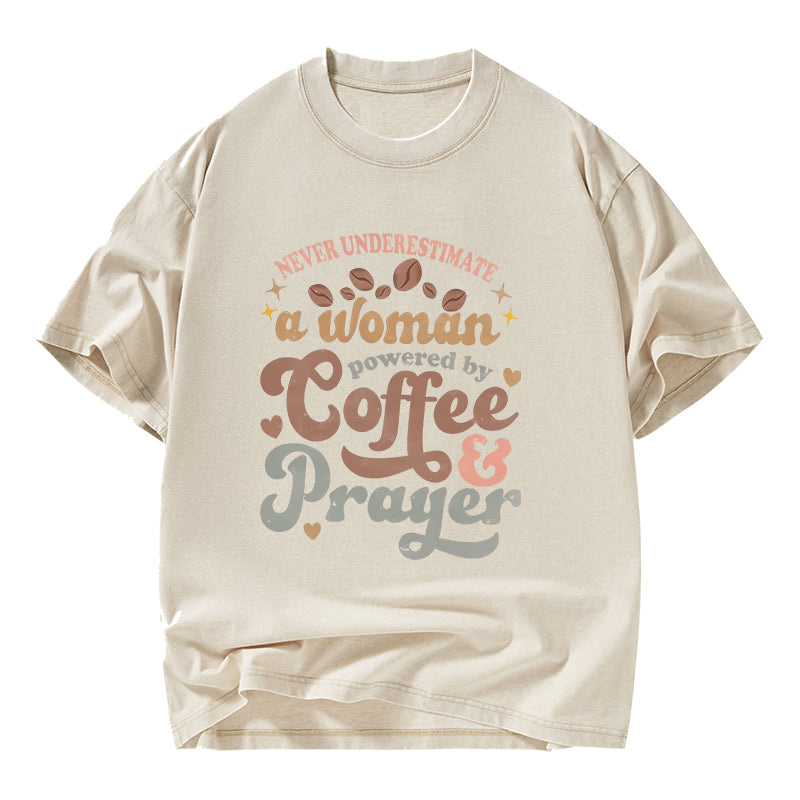 Powered By Coffee And Prayer Christian Washed T-Shirt
