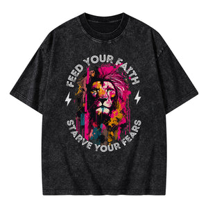 Feed Your Faith Starve Your Fears Christian Washed T-Shirt