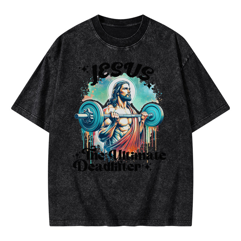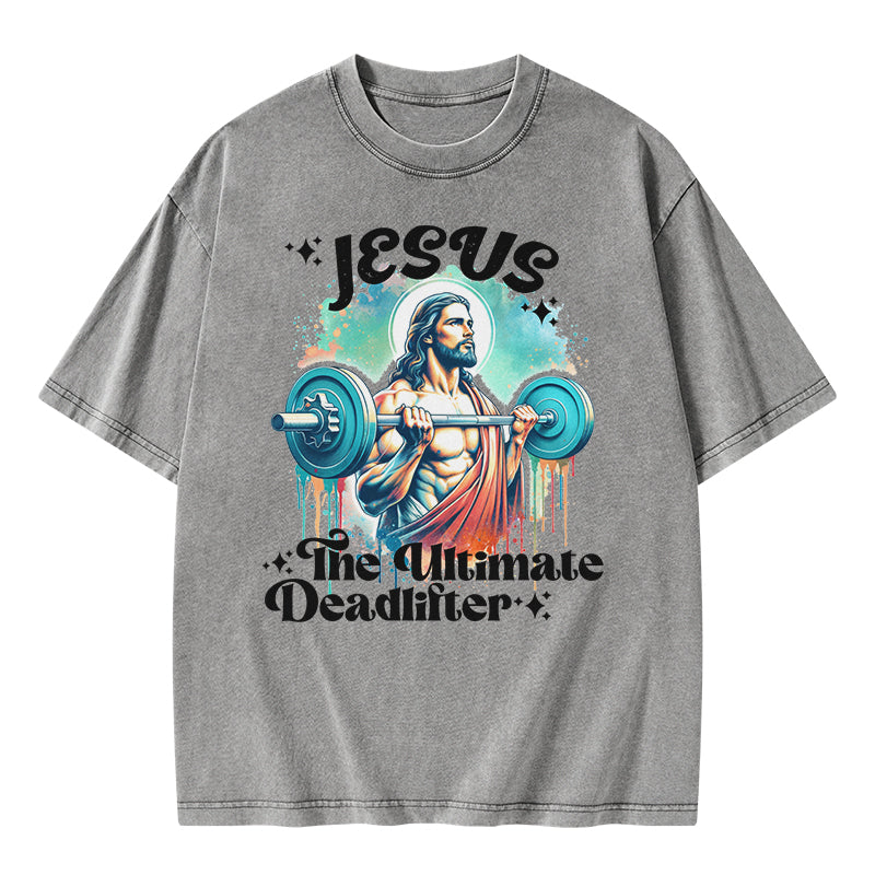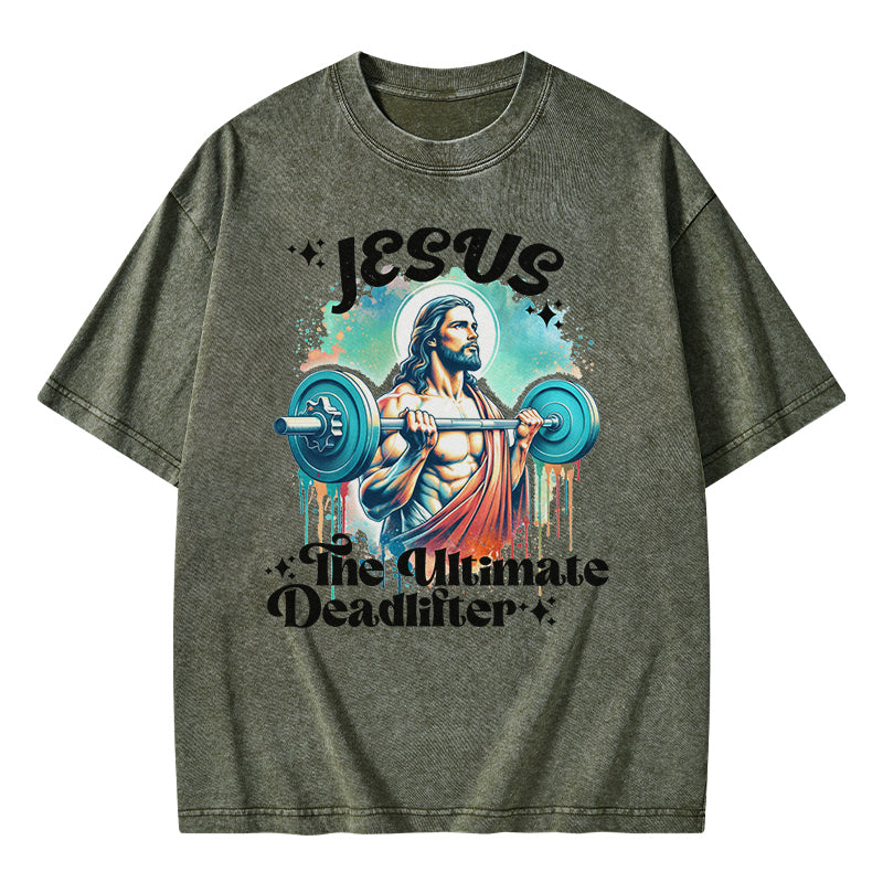 Jesus The Ultimate Deadlifter Christian Washed T-Shirt