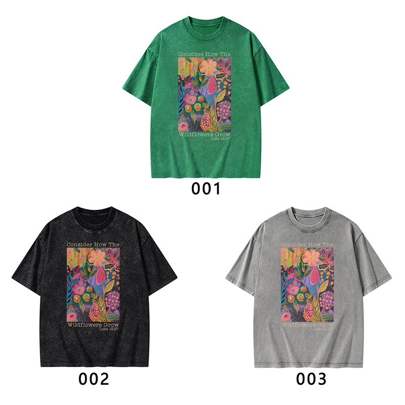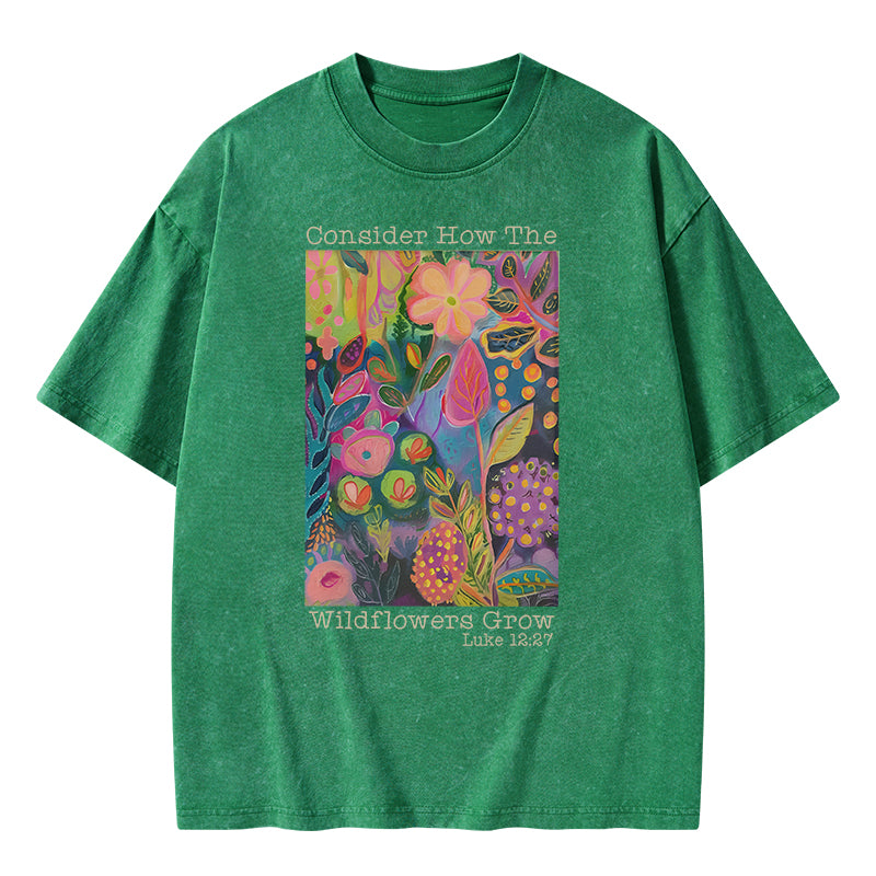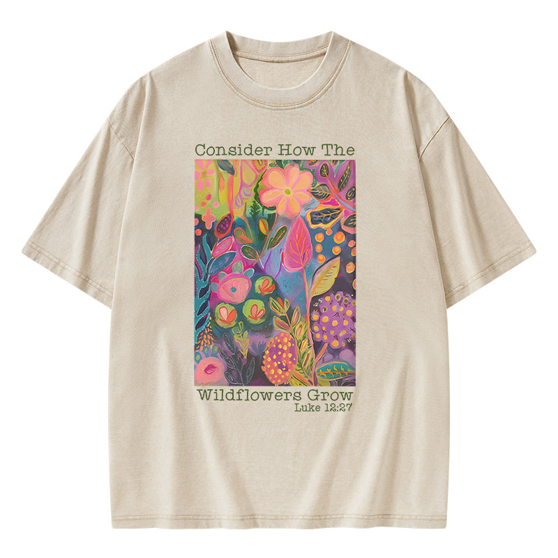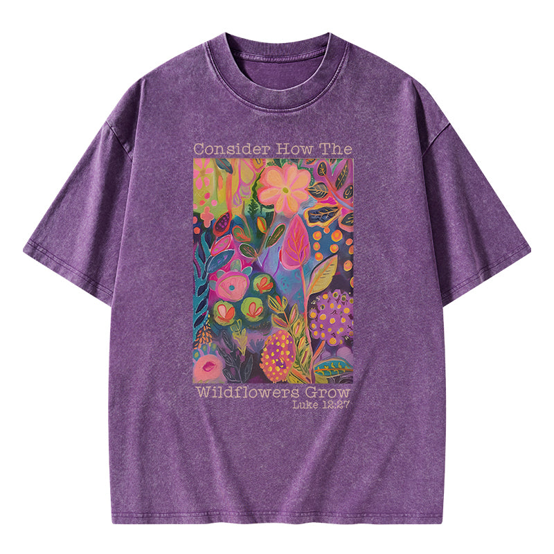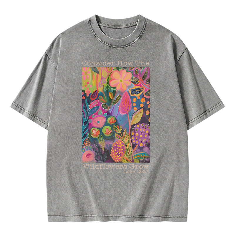 Consider How The Wildflowers Grow Christian Washed T-Shirt