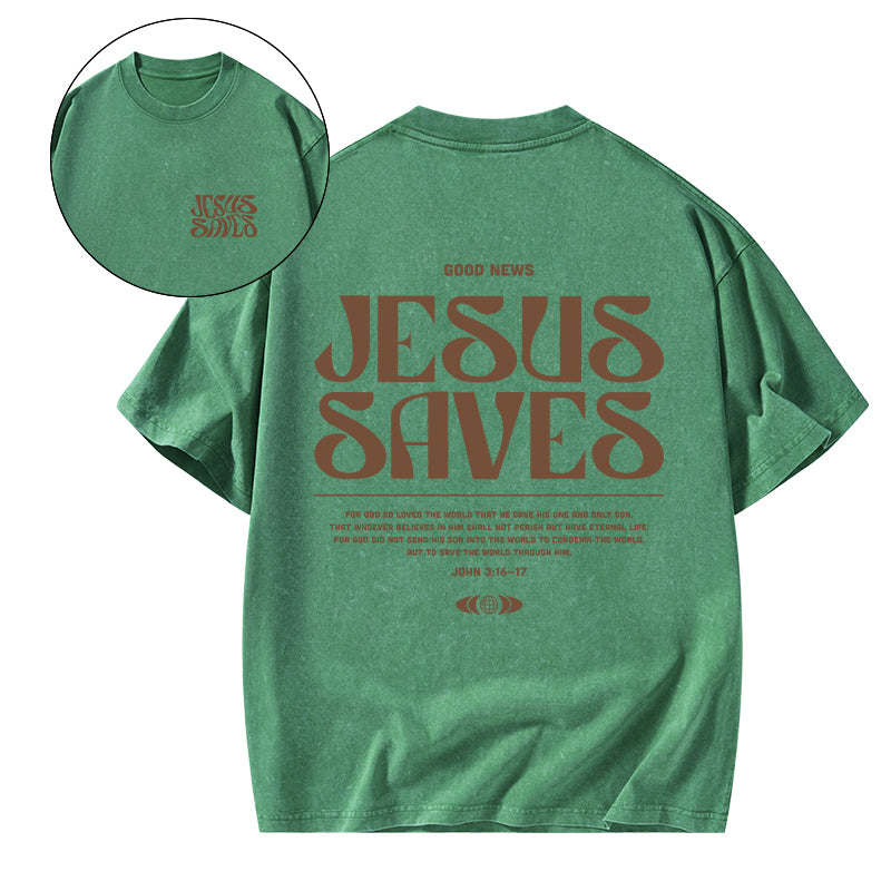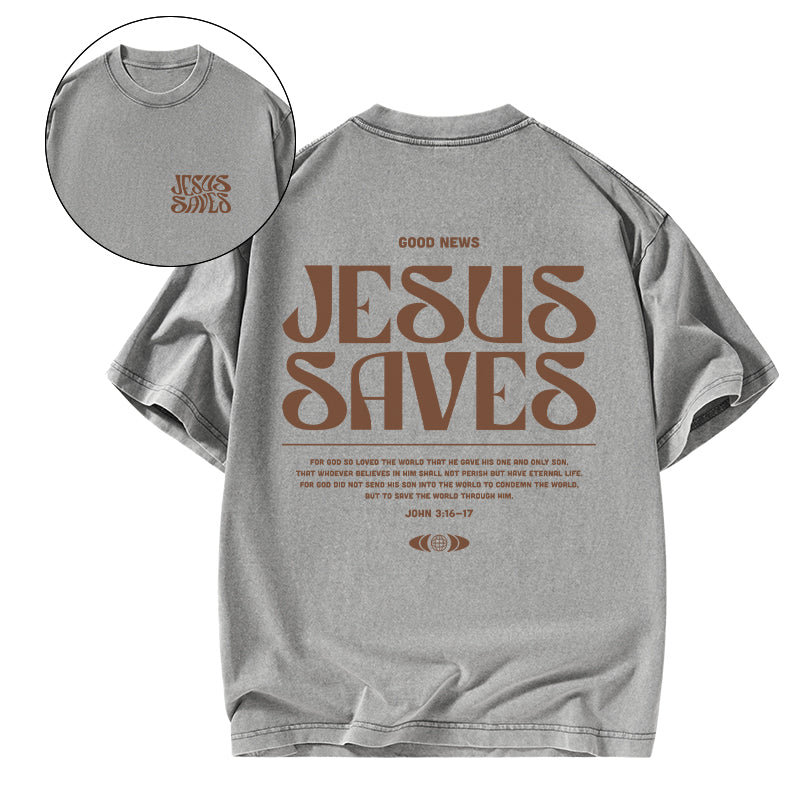 GC-WTS0105 Jesus Saves Christian Washed T-Shirt