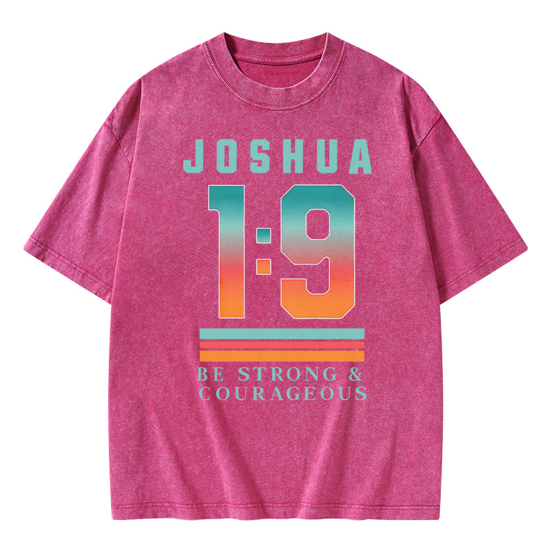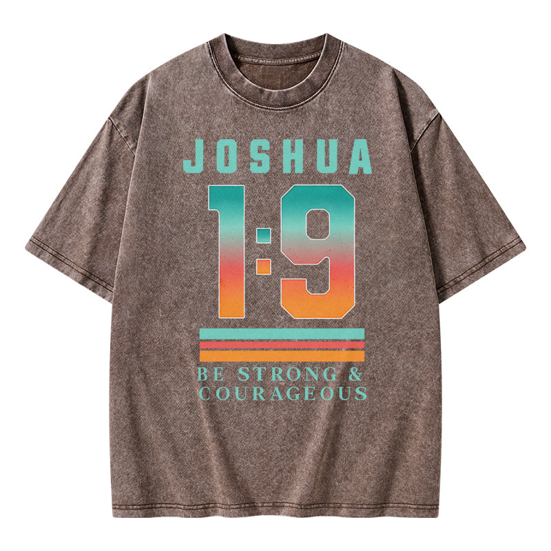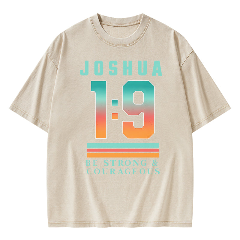 GC-WTS2348 Be Strong And Courageous Christian Washed T-Shirt